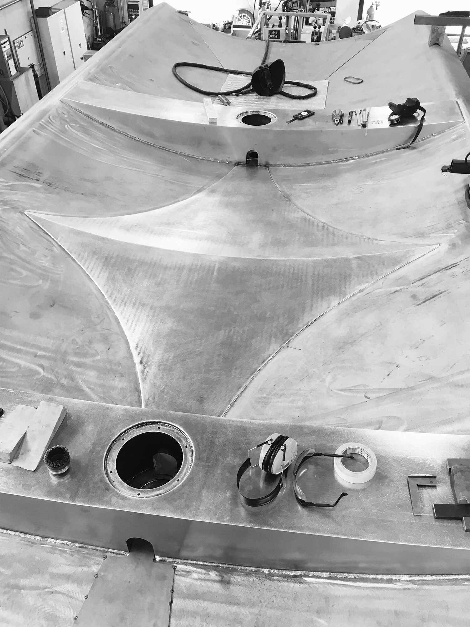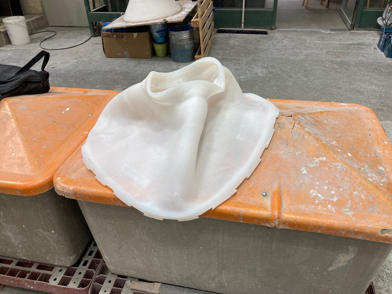 Durch die Verlegung der Haltestelle ‘Oberstrasse’ hangabwärts im Rahmen der Neugestaltung der Teufener Strasse wurde eine neue Haltestelle benötigt. Die Erstellung einer Normwartehalle hätte hier auf Grund des Gefälles und mit dem dahinter liegenden, 1913 erbauten Stickereigebäude keine gute Gesamtwirkung geschaffen. Die Struktur ist reduziert auf zwei Stützen und ein gewalztes Stahlblech, wobei die Konstruktion miteinander verschweisst ist. Die leicht gewölbte Form des Daches nimmt die weichen Wölbungen der geschwungenen Fassade auf und baucht in horizontaler Lage in den städtischen Raum, so wie es die Lisenen der verputzten Natursteinfassade in vertikaler Stellung ebenfalls tun. Die Entwässerung ist gelöst, indem ein dünnes, rautenförmiges Blech in die Wölbung des Daches eingeschweisst wurde, welche das Regenwasser in die Stützen einleiten. So entstand eine leichte, luftige Konstruktion, welche die charakteristische Sockelzone unbeeinträchtigt lässt und sich in die neu gestaltete Teufener Strasse einfügt.