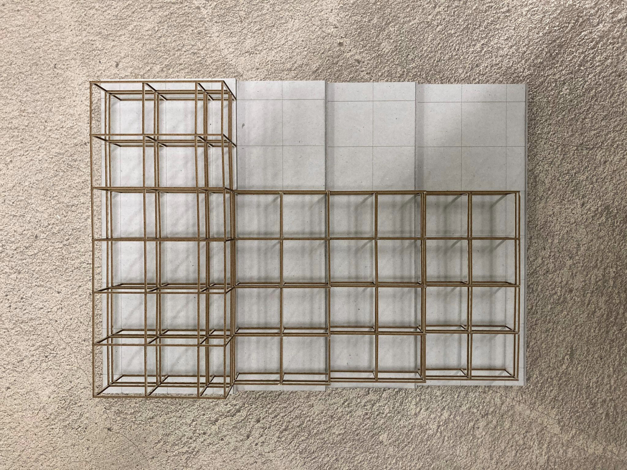 Der losgelöste Baukörper nimmt die Fluchten der Nachbarbauten rundum auf, weicht mit leichtem Knick vom Strassenverlauf zurück und tritt so schlank und feingliedrig, zweiteilig in Erscheinung. Die Einstellhalle des Strasseninspektorates wird von einer mehrgeschossigen Holzkonstruktion überspannt. Einem dreidimensionalen Raumgitter gleich, lässt die flexible Konstruktion unterschiedlichste Wohnungstypen zu. Zusätzlich ermöglichen Schaltzimmer eine schnelle Reaktion auf Veränderungen am Markt. Die so entstehende Vielfalt fördert die gewünschte soziale und demografische Durchmischung. Von Studios, Maisonettes mit Schaltzimmern, Durchwohnen auf die Laubengänge, bis hin zu grosszügigen, vierseitig belichteten Familienwohnungen nehmen die Grundrisse alles auf, oder können in der flexiblen Struktur entsprechend angepasst werden. Der gemeinsame Innenhof bildet das identitätsstiftende Zentrum der Anlage. Erschliessung, Filter und Aufenthaltsort in einem, wird er zum wichtigen Interaktionsraum der Siedlung. Neben der kühlenden und wasserspeichernden Funktion ist das sich ständig verändernde Beet mit unterschiedlich blühenden Blumen, Gräsern, Sträuchern und kleinen Bäumen auch optisch eine erfrischende Aufwertung, die zusätzlich zum Verweilen auf der langen Bank einlädt.