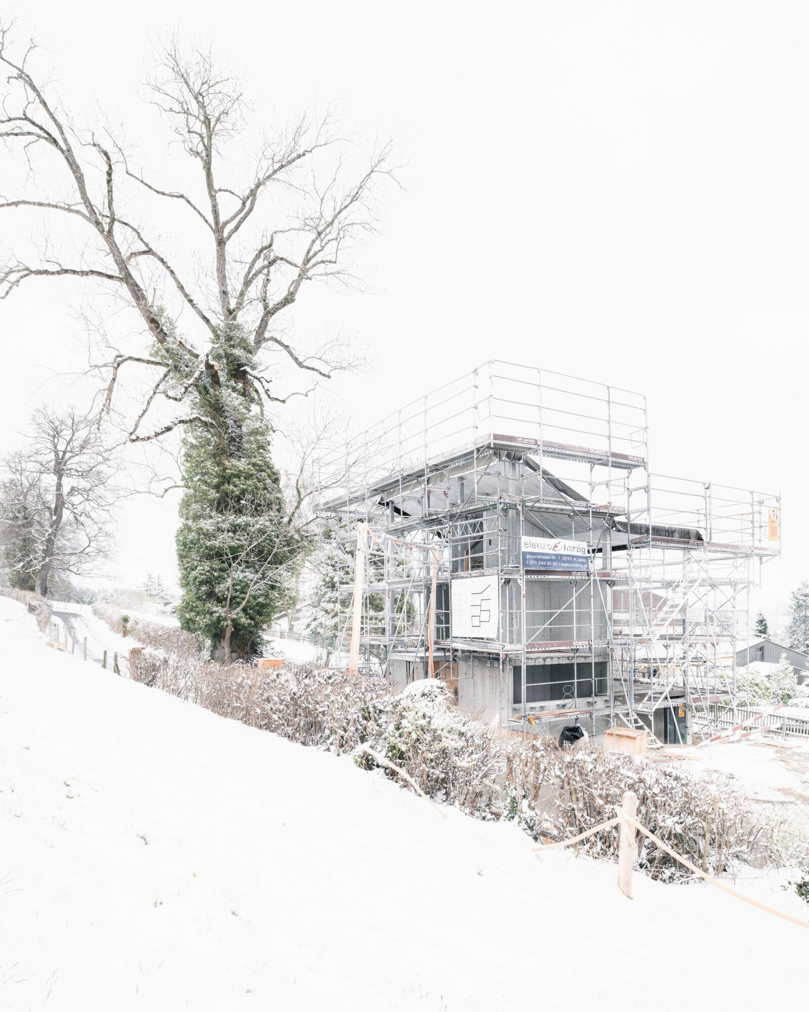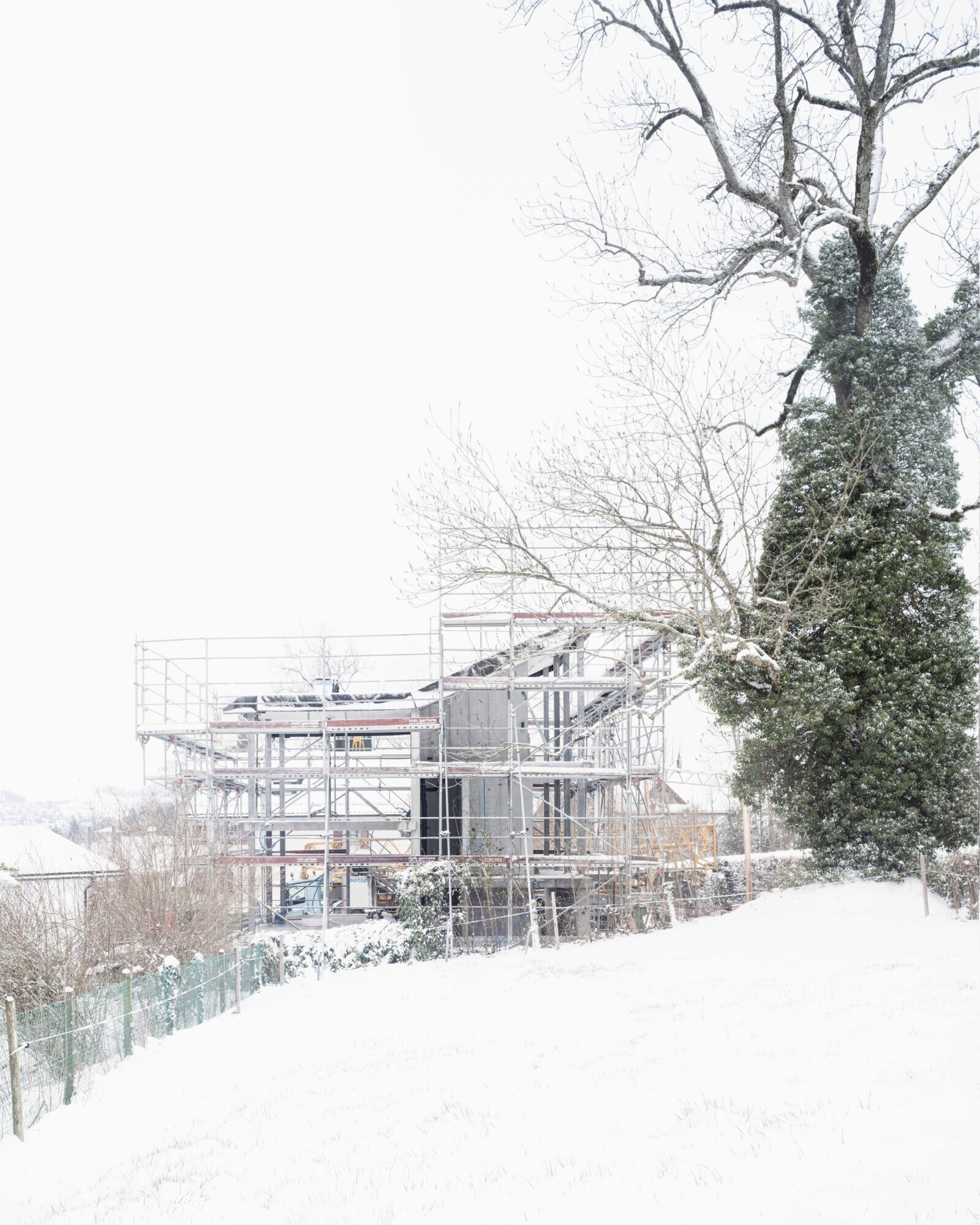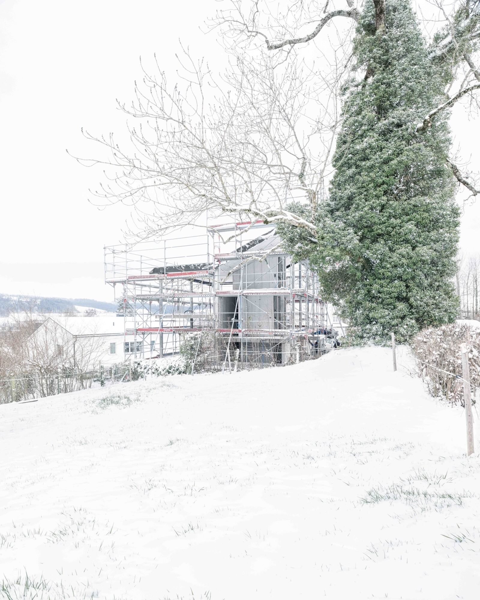 Auf einer Parzelle am Stadtrand unterhalb des Wildparks Peter Paul galt es, auf den Grundmauern eines kleinen, baufälligen Einfamilienhauses einen Ersatzbau zu errichten, der in seinem Fussabdruck exakt dem ursprünglichen Gebäude entspricht. Die geringen Abmessungen und das anspruchsvolle Raumprogramm erforderten einen äußerst sparsamen Umgang mit den vorhandenen Flächen und eine entsprechend einfache Struktur. Eine optimale Ausnutzung wurde durch die minimale Verkehrsfläche des Splitlevels, sowie durch eine Neuinterpretation der vorgegebenen Dachform erreicht. Durch die Hanglage und die parallel dazu verlaufende Dachneigung kann das oberste Wohngeschoss über die gesamte Grundfläche genutzt werden. Die klare und reduzierte Struktur zeigt sich auch in der Gliederung der Fassaden und setzt sich in der Materialisierung und Farbgebung im Inneren fort. Das Dach ist begehbar und damit wohl die größte Liege der Stadt.